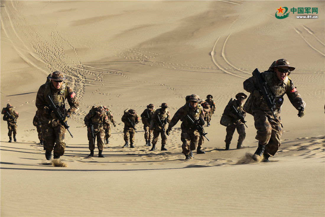 为提升防暴队员在多地域多气候环境下实战实训能力,战略支援部队某部在戈壁沙漠环境中组织了一场7天6夜“魔鬼周”极限对抗训练,有效检验和锤炼了防暴队员在指挥通信受限、战场环境受限、野外保障受限、应急机动受限等极限条件下的生存技能、战斗意志和应急处突水平。