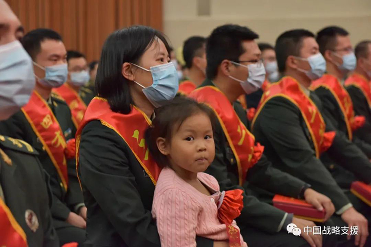 近日,战略支援部队某部对2020年度立功受奖人员进行表彰奖励。大会上,还邀请20名官兵家属代表现场观礼,共同登台,见证军人荣耀时刻,增加了军属自豪感、幸福感。