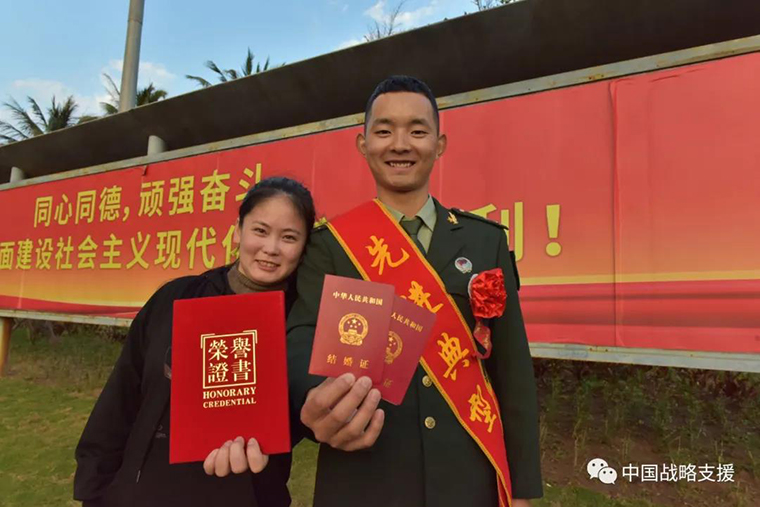 会场上,一对婚龄只有一天的新人格外惹人注目。该部战士陆倪和妻子郭利利结束了长达7年的爱情长跑。刚一领证,就被机关邀请来参加表彰。