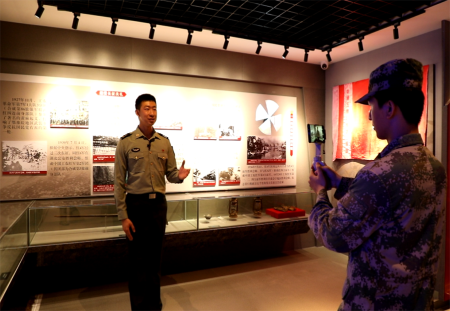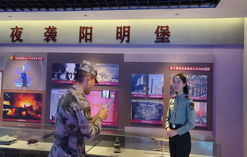 “欢迎战友们线上参观第73集团军史料文物室,我是讲解员王亚婷,我是王爽,我是贾玉名……”3名讲解员通过“学习强军”App课程号直播功能,对着手机镜头笑容满怀地与官兵打招呼,一开场就获得大家对讲解形式的好评。