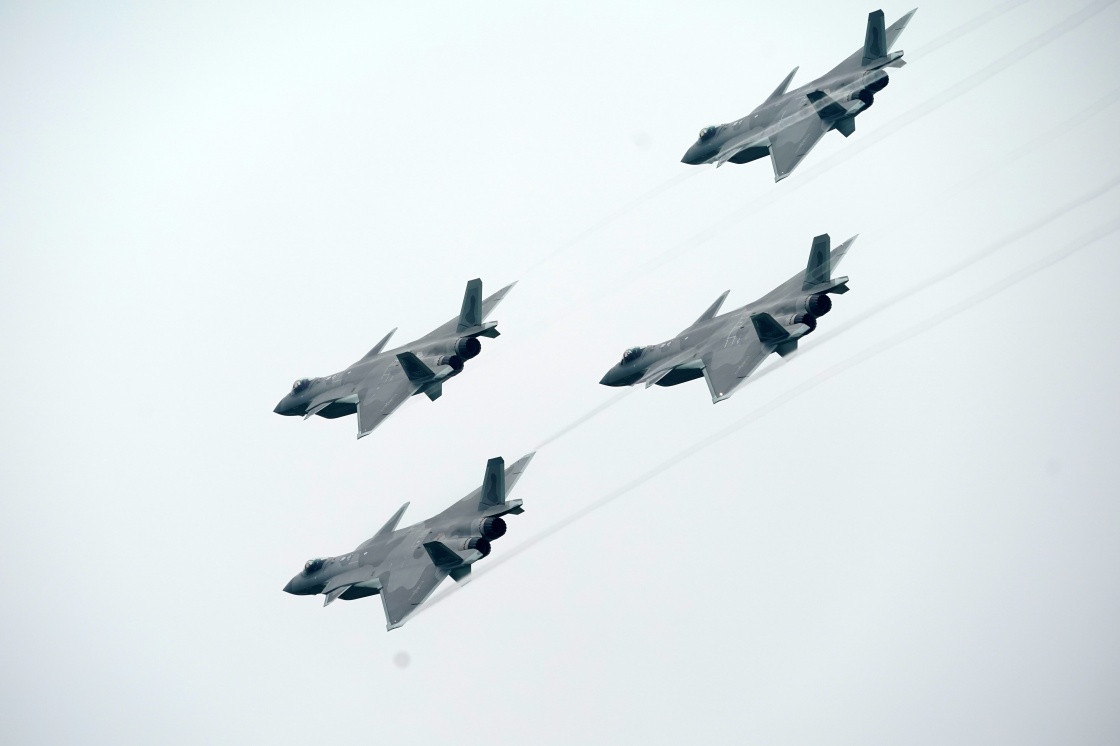 4架歼-20以四机钻石队形低空通场,四机小角度拉升,向所有来宾致意。开幕式上,歼-20表演了四机通场、前双机盘旋、后双机水平交叉、大仰角转弯脱离等精彩动作。空军歼-20飞行员王震介绍说,“整套表演动作充分展示了歼-20优异的操纵品质、良好的机动性能,同时展示了空军日新月异的装备水平,实战化军事训练成绩和捍卫国家主权、安全、发展利益的战略能力。”