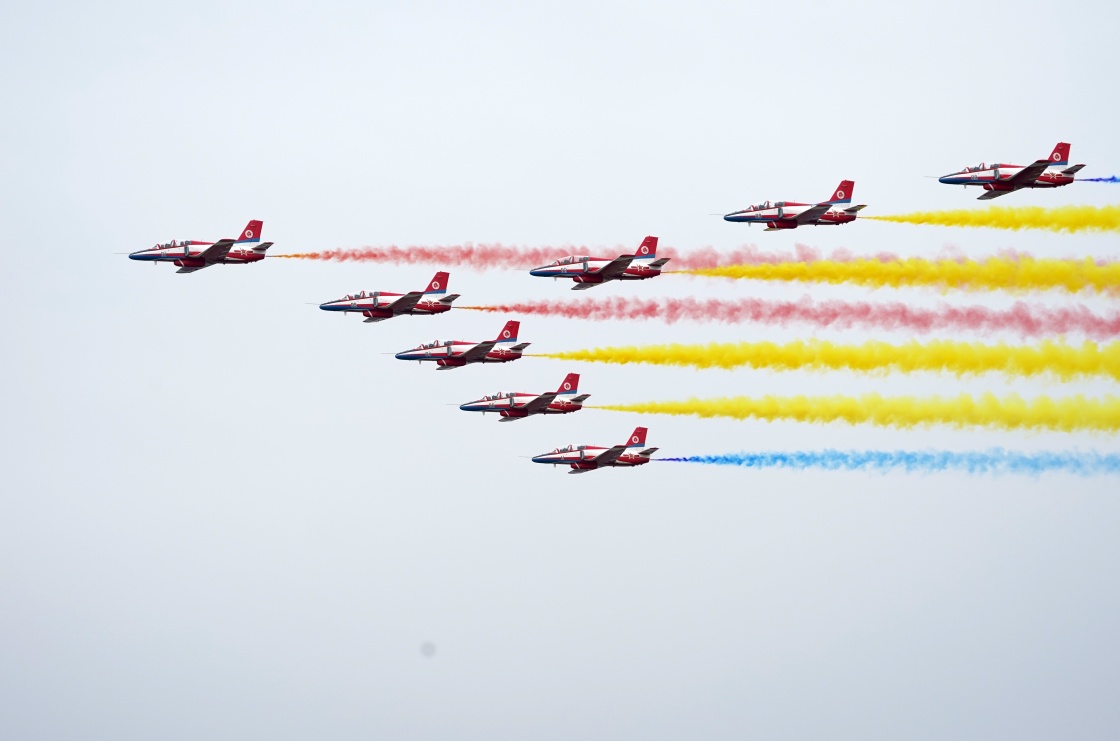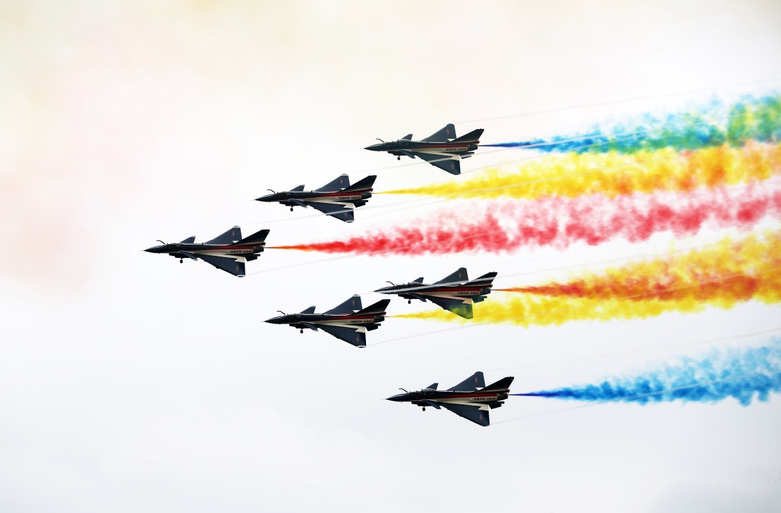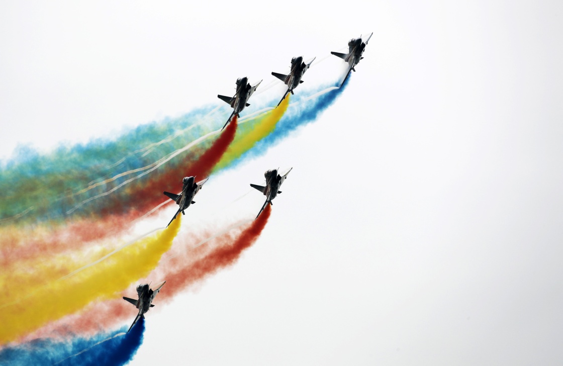 11月8日,空军八一飞行表演队在第十四届中国航展上进行飞行表演。新华社发(余红春 摄)