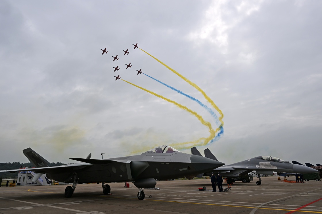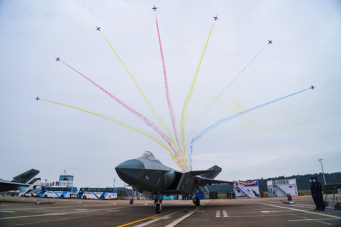 11月8日,空军歼-20战机在第十四届中国航展上进行飞行展示。新华社发(余红春 摄)