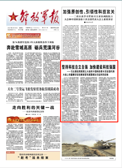 “几年来,在党中央坚强领导下,在全国科技界和社会各界共同努力下,我国科技实力正在从量的积累迈向质的飞跃、从点的突破迈向系统能力提升,科技创新取得新的历史性成就。”习主席的科学总结,让解放军和武警部队官兵信心满满、备受鼓舞。中国工程院院士、陆军工程大学教授钱七虎兴奋地说:“习主席的重要论断,让我们对实现‘两个一百年’奋斗目标、实现中华民族伟大复兴的中国梦更加充满信心。”