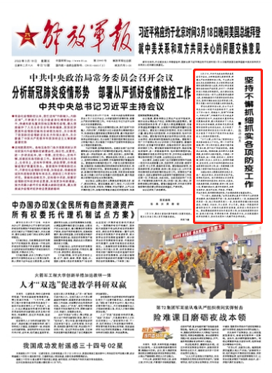 “尽小者大,慎微者著。”全军各级要认真学习贯彻习主席重要讲话精神,把问题想得严重一些,把风险想得大一些,把措施定得更周密一些,把工作抓得更深入一些,时刻保持清醒头脑和临战姿态,不懈怠、不松劲,守土有责、守土尽责。要进一步提高科学精准防控水平,不断优化疫情防控举措,使防控工作更有针对性。要统筹推进疫情防控和年度各项工作,切实做到疫情防控不松、备战力度不减、军事训练不停、管理秩序不乱,扎实提高履行使命任务能力,坚决完成党和人民赋予的各项任务。