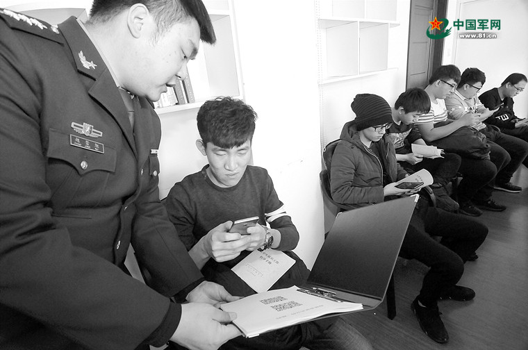 黑龙江省海林市人武部利用大数据平台筛选出高学历、高素质适龄青年,通过数据交互系统定期为适龄青年推送征兵宣传信息。图为适龄青年正在通过扫手机二维码登录大数据平台。赵景旭 摄