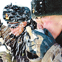 与岗巴“高原戍边模范营”的官兵握手,记者小心翼翼,生怕因用力过猛把官兵们手上的冻疮、血泡给捏破了。