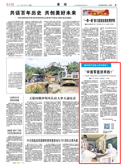 “中国军医好样的!”在南苏丹瓦乌,提起中国维和部队的军医,当地民众总会竖起大拇指。
