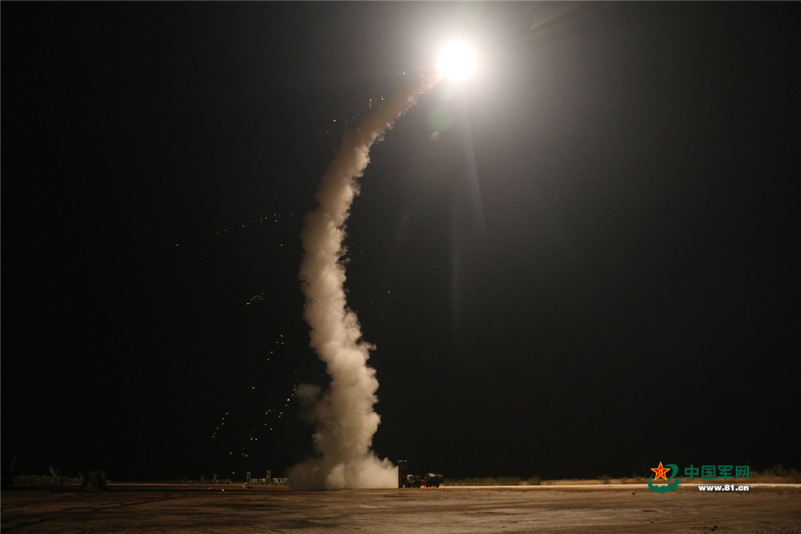 “发射!”随着指挥员一声令下,一枚枚导弹腾空而起,瞬间照亮沉沉夜空,数架“敌机”瞬间被击落,取得发发命中的优异成绩。