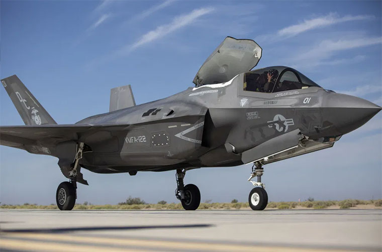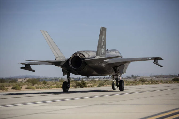 据外媒报道,美国海军陆战队第122战斗攻击机中队在亚利桑那州尤马航空站的跑道上,首次成功进行F-35B“闪电”短距/垂直起降战斗机的短距降落测试。借助该技术,该机未来将更多用于支持远征前进基地作战。