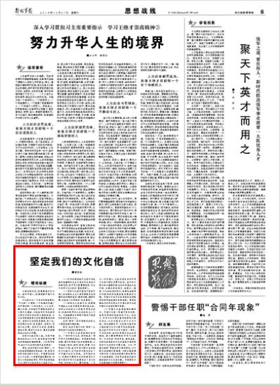 坚持文化自信是更基础、更广泛、更深厚的自信,是更基本、更深沉、更持久的力量。坚定文化自信,是事关国运兴衰、事关文化安全、事关民族精神独立性的大问题。
