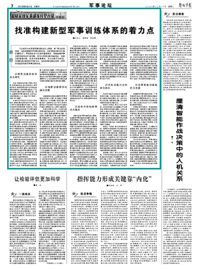 由机械化信息化迭代发展向智能牵引转变,增强军事训练体系的时代性。科技是核心战斗力。随着人类社会向智能化时代迈进,军事领域的智能化程度,正逐步成为衡量一支军队建设水平的重要标志,而智能技术对军事训练领域的影响将是颠覆性的。因此,应把智能化作为牵引新型军事训练体系构建的重要抓手,以适应国防和军队建设机械化信息化智能化融合发展的现实需要。