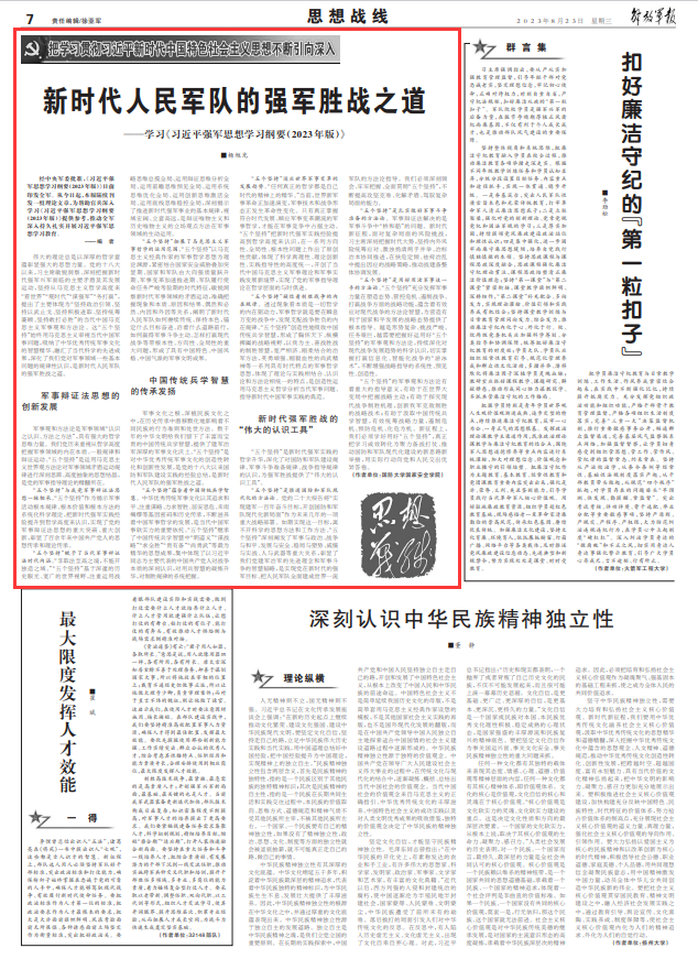 经中央军委批准,《习近平强军思想学习纲要(2023年版)》日前印发全军。从今日起,本版陆续刊发一组理论文章,为帮助官兵深入学习《习近平强军思想学习纲要(2023年版)》提供参考,推动全军深入持久扎实开展习近平强军思想学习教育。