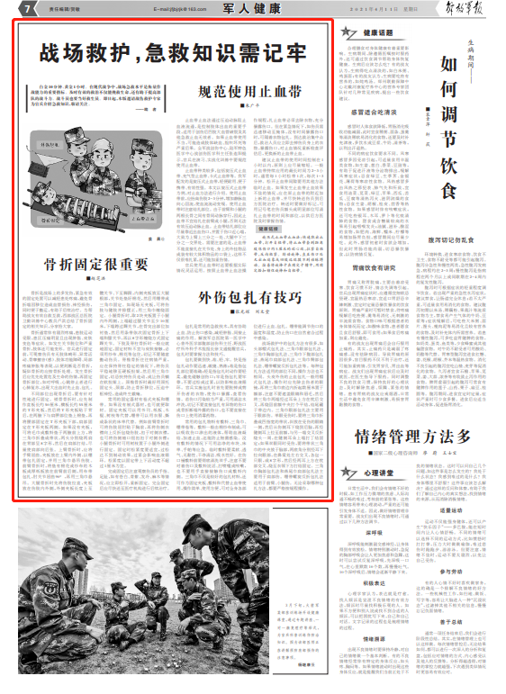 白金10分钟、黄金1小时。在现代战争中,战场急救水平是衡量作战能力的重要指标。及时有效的救治不仅能挽救生命,还有助于提高部队的战斗力。战斗员也要当好救生员。即日起,本版邀请战伤救护专家为官兵介绍急救知识,敬请关注。