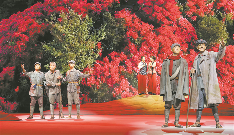 对党忠诚、听党指挥的红色基因深深扎根于一代代革命军人的血脉灵魂,这是“向心凝聚”板块要表现的主题。为了形象地诠释这一主题,课程一开始就演出了一幕感人的红色短剧《一封情报》。过草地时,因伤病而掉队的官兵成立了临时党支部。几名伤病严重的支部成员为了让红小鬼走出草地,特意安排他带着一封“情报”去追赶大部队,并叮嘱红小鬼“永远跟着党走”……红军战士铁心向党的赤胆忠诚,深深感染着观众。