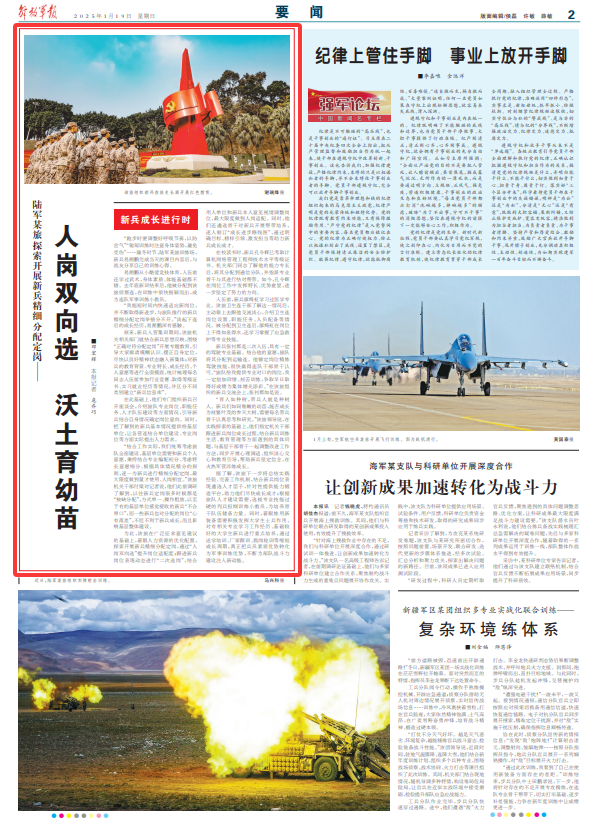 据了解,该旅下一步将总结实践经验、完善工作机制,结合新兵岗位表现遴选人才苗子,针对性提供能力锻造平台,助力他们尽快成长成才;根据旅队人才建设需要,选拔专业技能过硬的列兵担纲训练小教员,为培养骨干队伍储备力量。同时,着眼练用新装备需要积极发挥大学生士兵作用,对有相关专业学习工作经历、基础较好的大学生新兵进行重点培养,通过送学培训、厂家跟训、换岗轮训等缩短成长周期,真正把兵员素质优势转化为军事训练优势,不断为部队战斗力建设注入新动能。