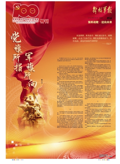 百年恰是风华正茂,百年仍需风雨兼程。今天,是一个新的伟大的起点。仰望鲜红的党旗、军旗,我们心潮澎湃,我们豪情满怀,我们充满必胜的力量。