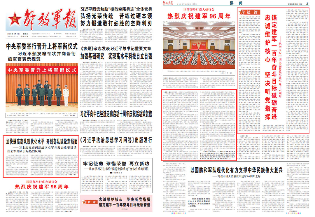 (解放军报北京7月31日电 记者康子湛、张磊峰、徐小龙、李蕾,特约记者杨进、汪学潮,通讯员马骊龙、邓栋之、刘波、胡勇华、康世超、薛维高、白天任、时成帅、魏震宇、员怡怡、吴淮江、许韶玉、宋美洋、刘杰、周叶青、张永清、陶婧、李佳轩、王皓、丁雷、吴世科、王杰、陈帅、宋琢、王旭、纵恒、郭帅等采写)